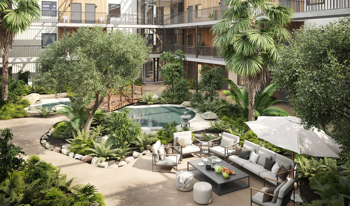 Bovieran er et svensk konsept som har hatt stor suksess i både Sverige og Danmark, og som nå er på vei til Norge. Ideen er enkel: å skape et trygt og sosialt fellesskap for eldre, hvor man bor i moderne leiligheter med en stor, overbygd hage i midten. Hageanlegget er oppvarmet året rundt, fylt med grønne planter, blomster og sitteplasser – et sted hvor beboerne kan møtes uansett årstid.