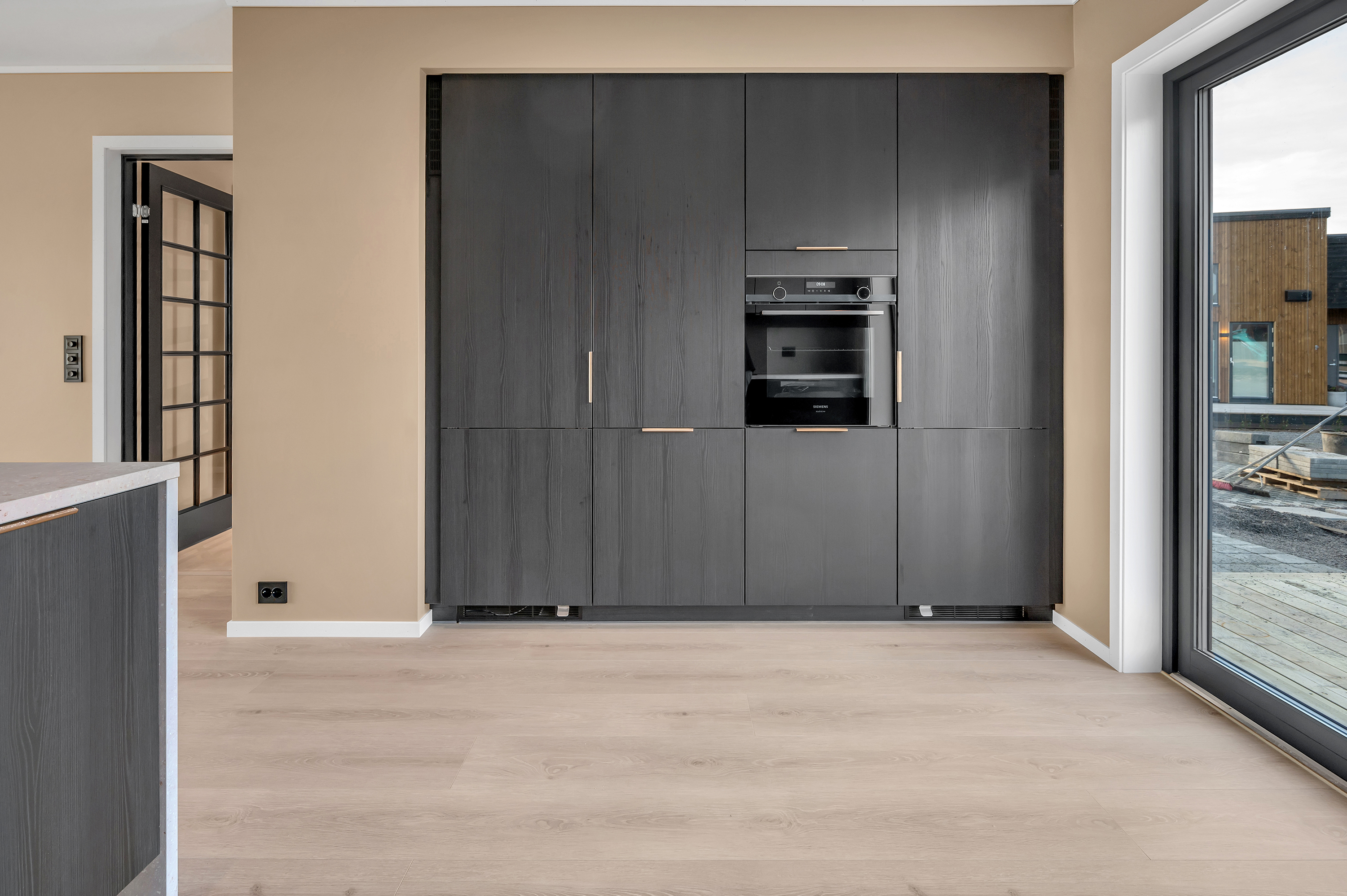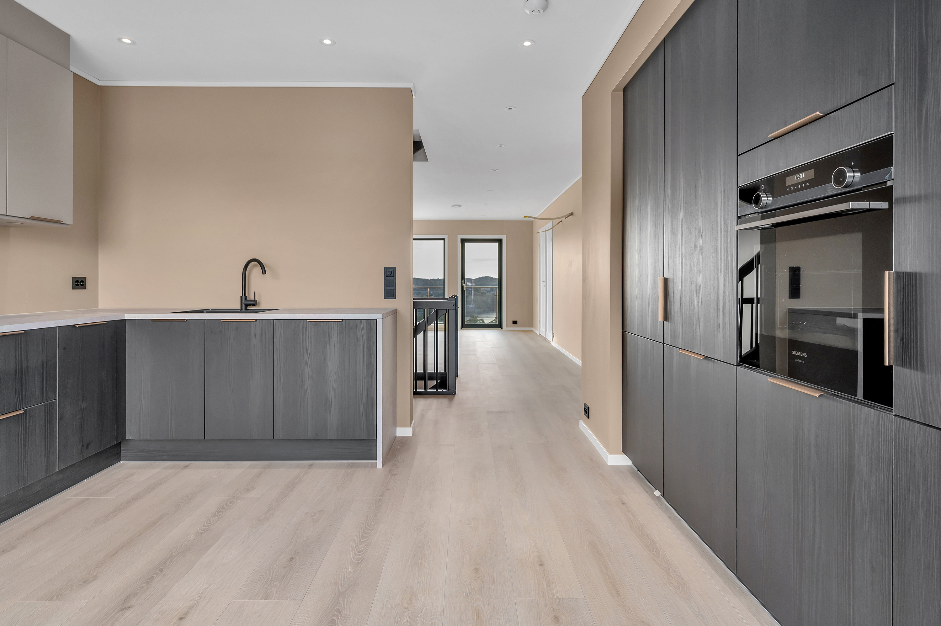 Det leveres innholdsrikt kjøkken fra HTH med integrerte hvitevarer fra Siemens.