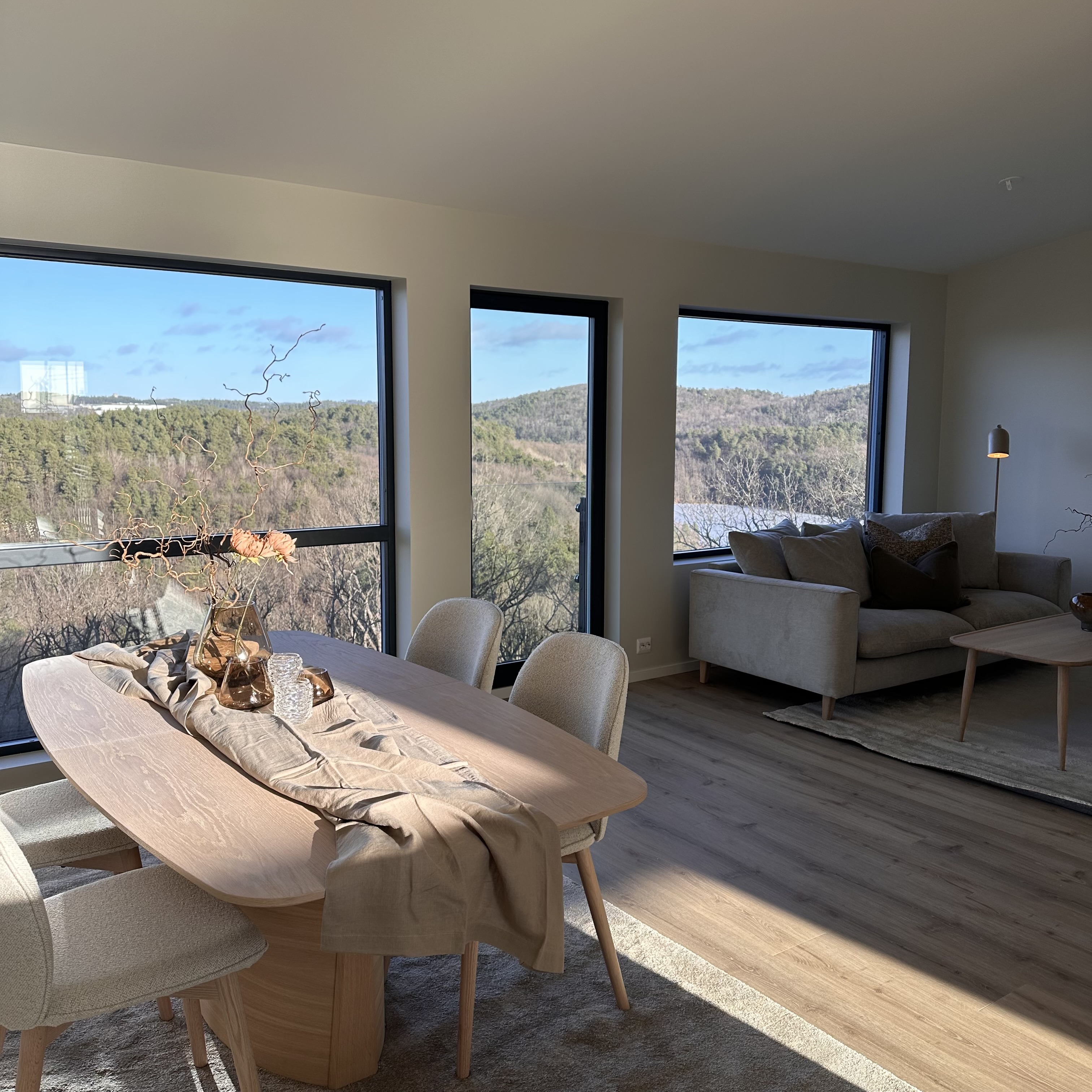 Boligen er innflytningsklar og vi har innredet den med delikate møbler så du kan få en god visningsopplevelse med oss.