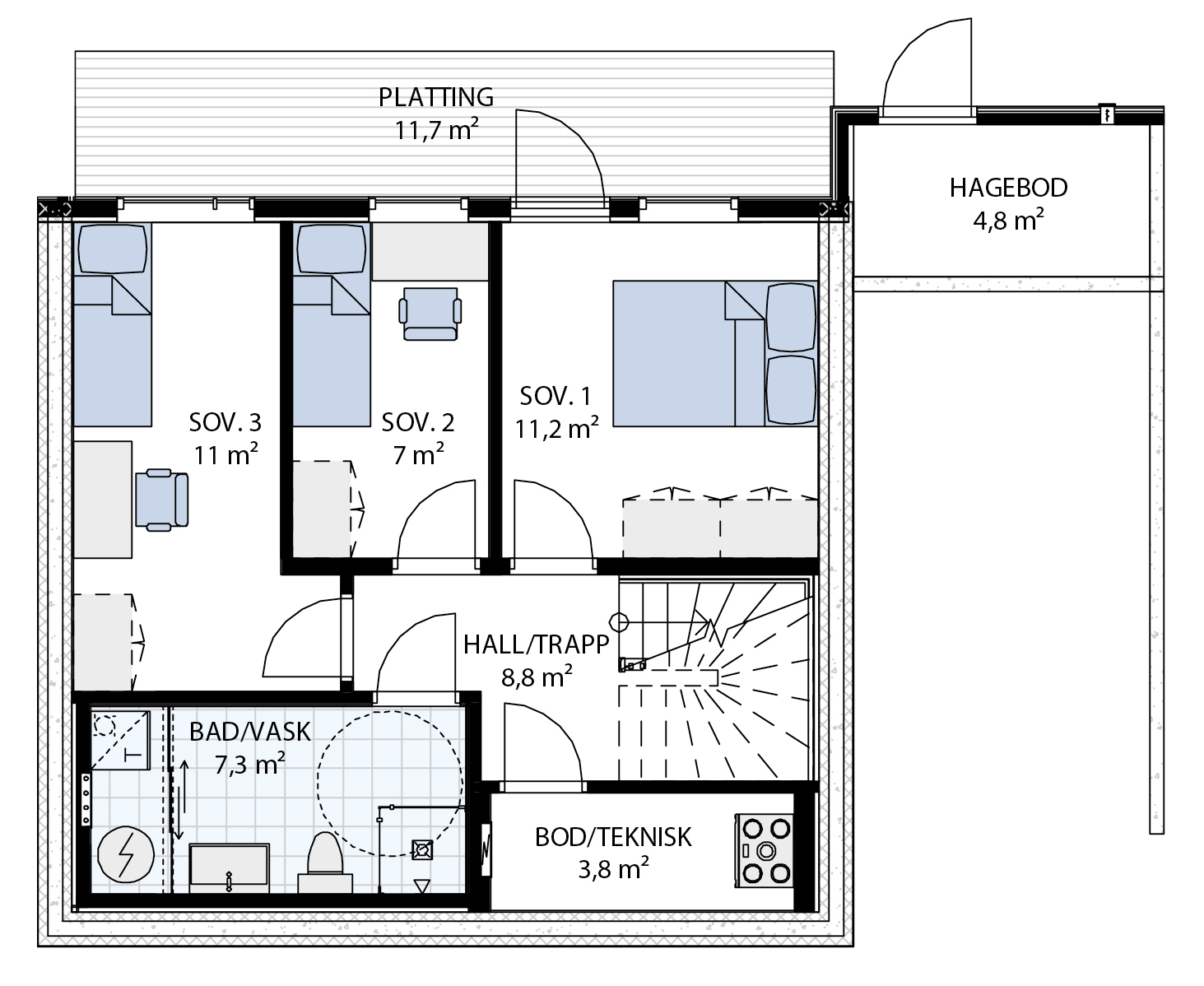 Boligene holder en meget god standard med 3 soverom, stue/kjøkken og lekkert HTH kjøkken og fliselagt bad og parkettgulv. OBOS Block Watne er opptatt av gode nabolag og har derfor også ferdig opparbeidet tomt inkludert i kjøpesum iht utomhusplan som kan fås av megler.