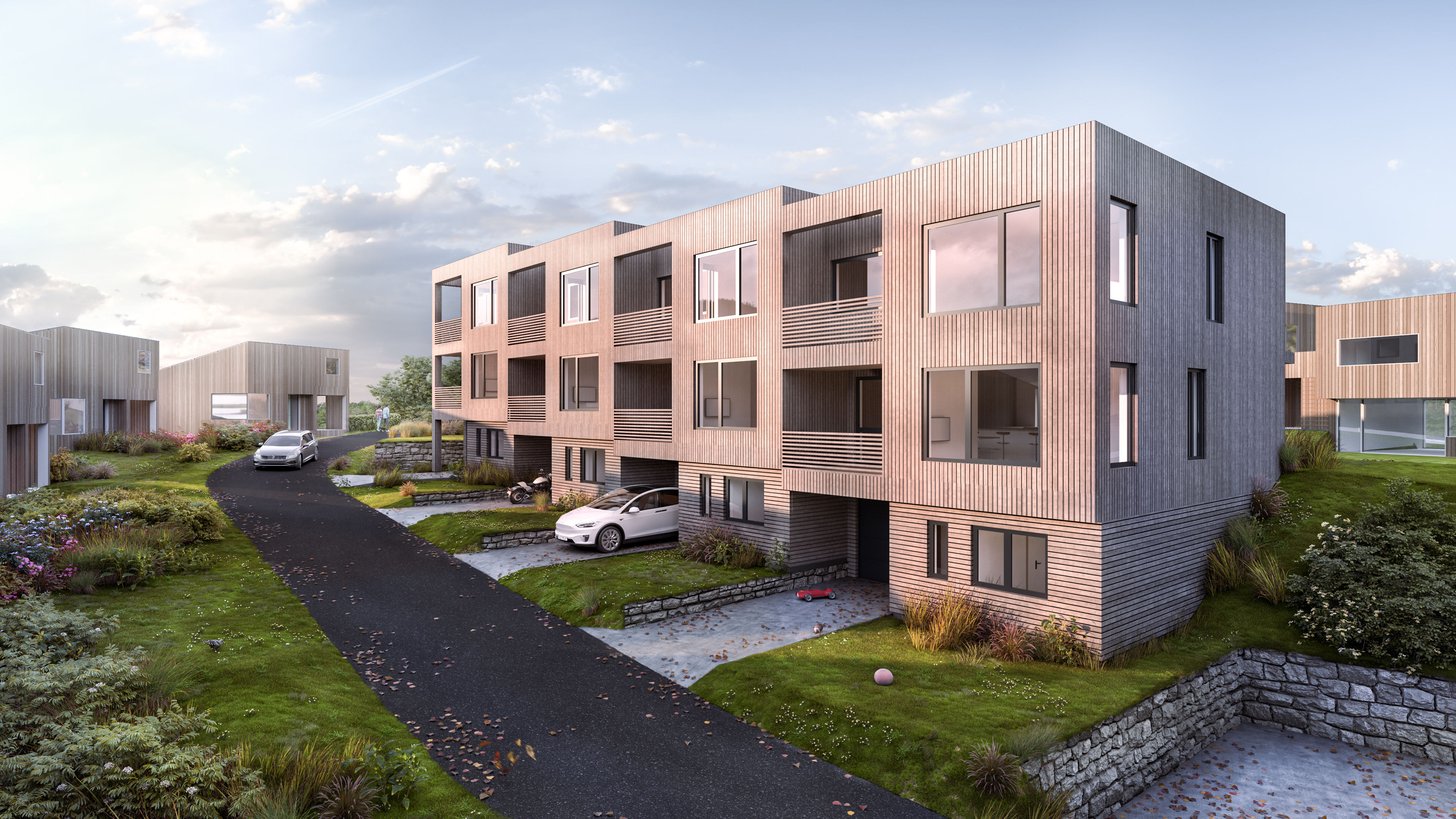 4 prosjekterte boliger i rekke.