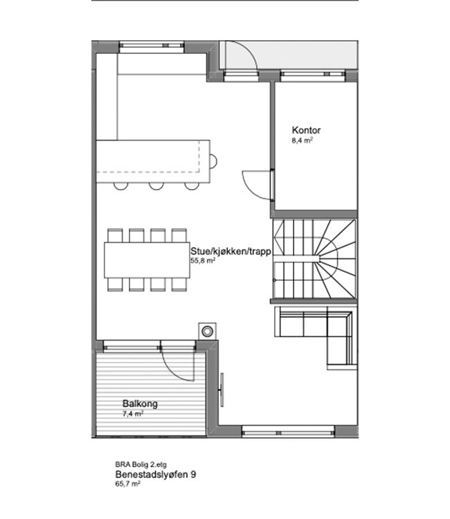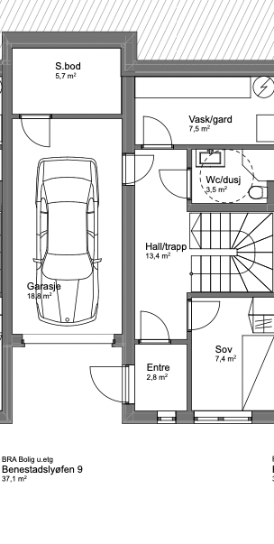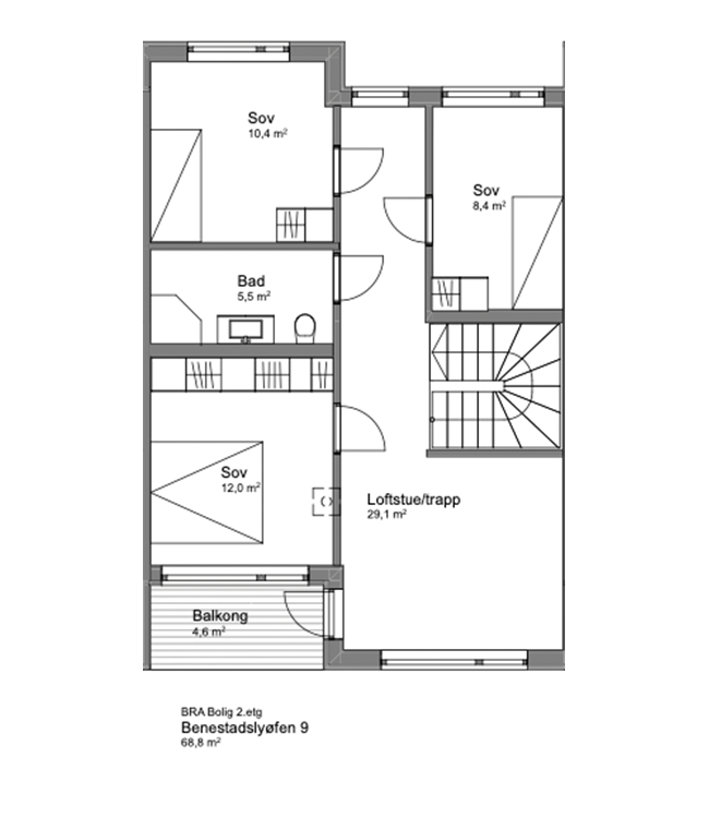 Boligene går over 3 etasjer og tilbyr 4 soverom, et praktisk vaskerom/garderobe, to bad og en større åpen stue/kjøkken-løsning. Boligen har i tillegg en større loftstue, garasje og to balkonger. Fra stue/kjøkken er det utgang til grøntområde bak huset.