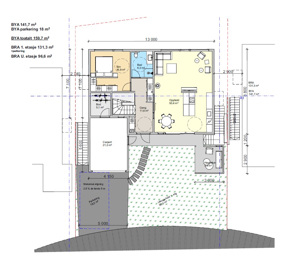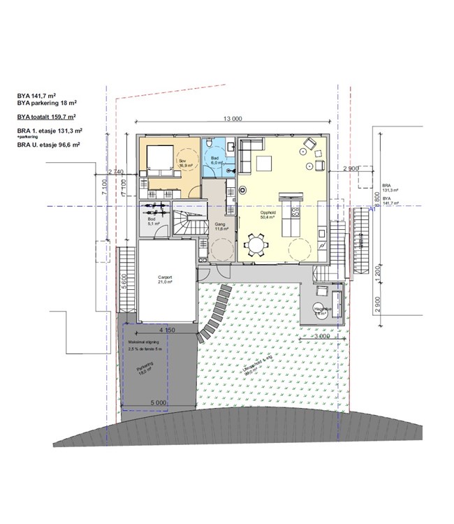 Her anlegger vi hage, legger belegningsstein, nødvendige murer etc alt for å få det helt ferdig på tomten. Selve huset leveres med varig og lite vedlikeholdskrevende kledning og aluminiums beslåtte 3-lags vinduer. Se også spennende løsning med hagestue som leveres. Trapper i støpt betong begge sider av bolig for enkel tilgang til hage mot nord-øst.