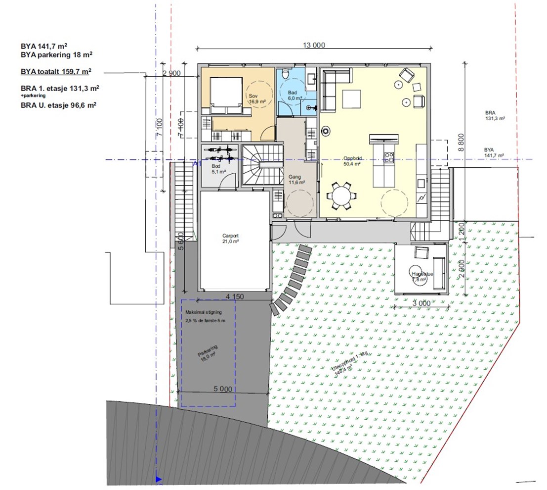 Her anlegger vi hage, legger belegningsstein, nødvendige murer etc alt for å få det helt ferdig på tomten. Selve huset leveres med varig og lite vedlikeholdskrevende kledning og aluminiums beslåtte 3-lags vinduer. Se også spennende løsning med hagestue som leveres. Trapper i støpt betong begge sider av bolig for enkel tilgang til hage mot nord-øst.