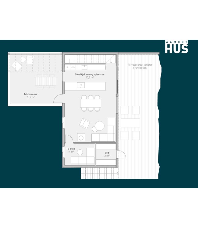 Se byggebeskrivelse og romskjema i salgsoppgave for nøyaktig leveranse.