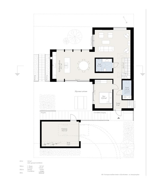 Svært innholdsrike og eksklusive atriumhus med særegen planløsning som gjør at disse boligene skiller seg ut! Det er lagt opp til rause fellesarealer som tar inn uteområde på en elegant måte!