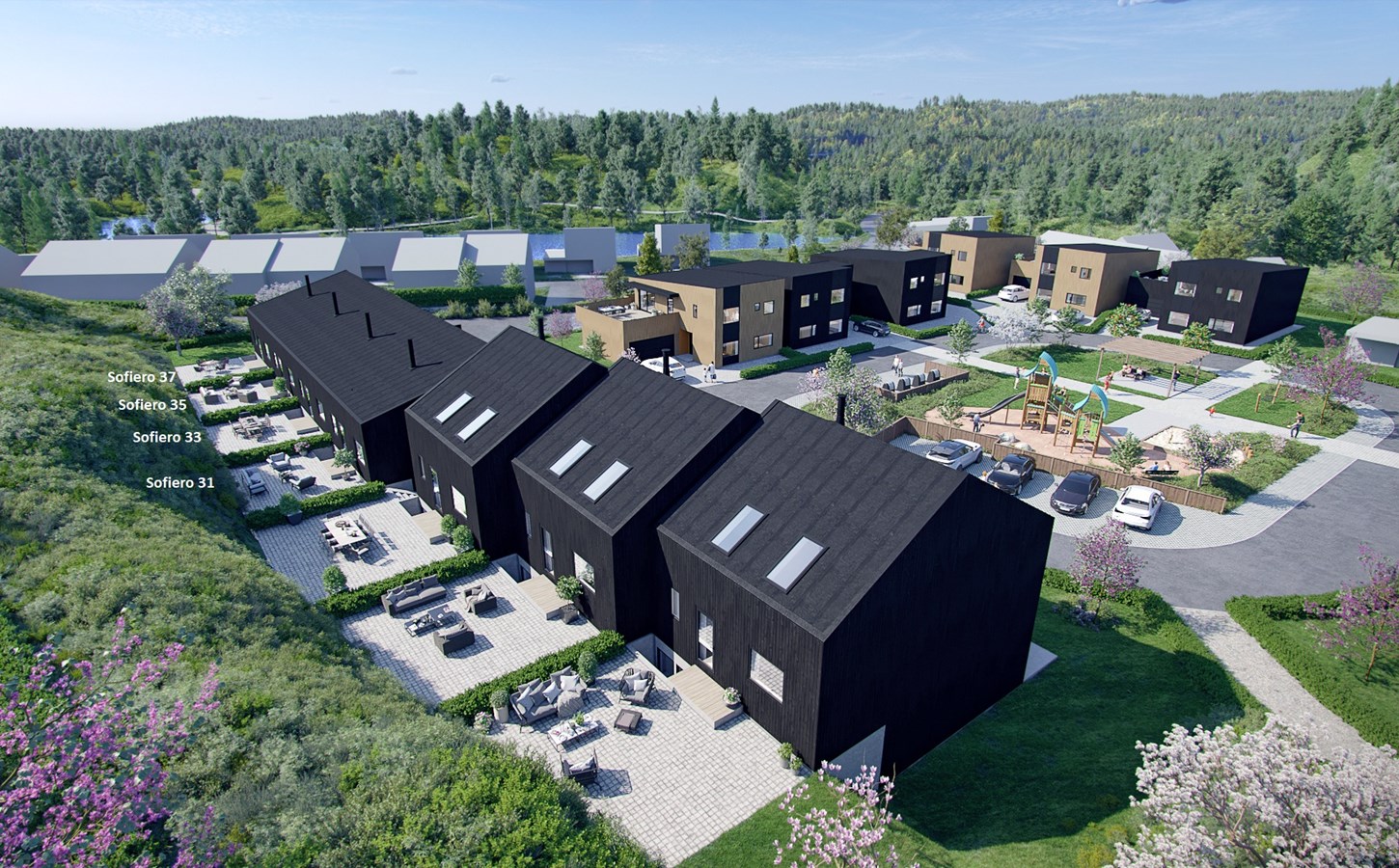 Vi har gleden av å presentere Sofiero 37, et rekkehus i 2 plan tegnet i felleskap av arkitekt Øyvind Flatnes og Knut Ove Kristiansen. Rekkehusene ligger på en fin liten høyde og har sol fra morgen til kveld. Samtlige rekkehus bygges på flat selveier tomt, og grenser til et felles tun med stor leke-/mingleplass.
