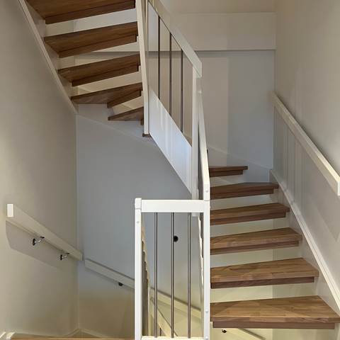 Trapp fra Hagengruppen, modell Berg - og hvitpigmentert eikeplank fra Boen parkett 😍: