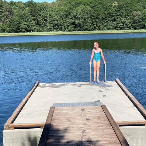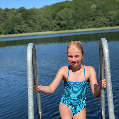 Det var skikkelig varmt i dag, så Eline fikk raskt på badetøy og hoppet uti. Overrasket utbrøt hun: «Mamma, det er jo ikke salt i det hele tatt!» Ja, det viser seg at det er brakkvann akkurat her, noe som gjør at det ikke er så salt som helt ute ved kysten. Faktisk helt perfekt saltnivå, synes jeg. Brakkvann er liksom en mellomting mellom saltvann og ferskvann. Samtidig har man tilgangen til sjøen med kajakk eller båt, selv om vi ikke har noen av delene. Men det snakkes om at de skal anlegge en slags kajakk-hotell etterhvert. Det blir gøy å sjekke ut det også, og kanskje leie en kajakk om jeg tør. Digg vann, altså!