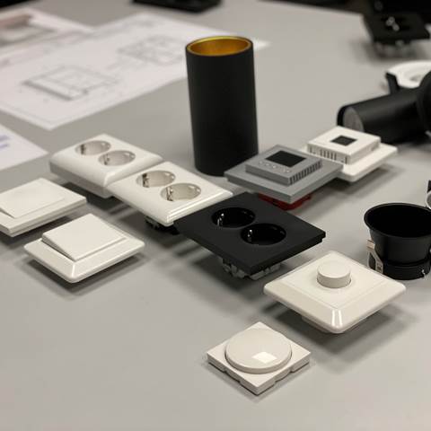 Her kan du se noen av de ulike støpslene og ulike dimmere som kan velges.
