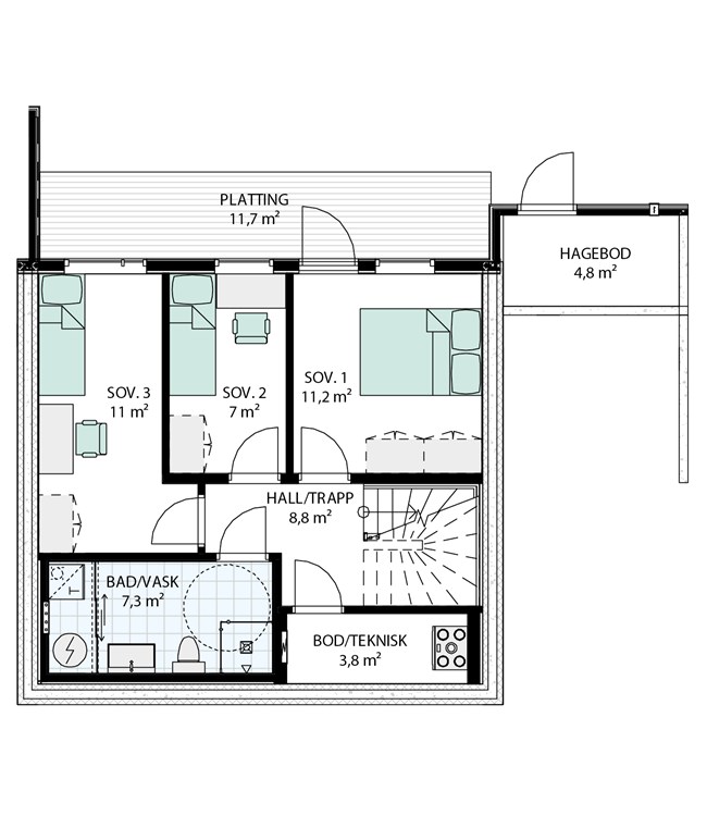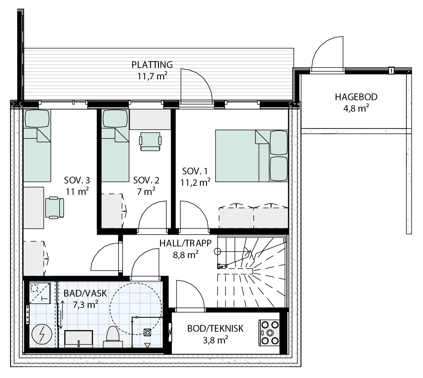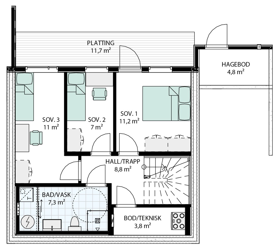 Nøkkelferdig enebolig i kjede med opparbeidet utomhus/tomt