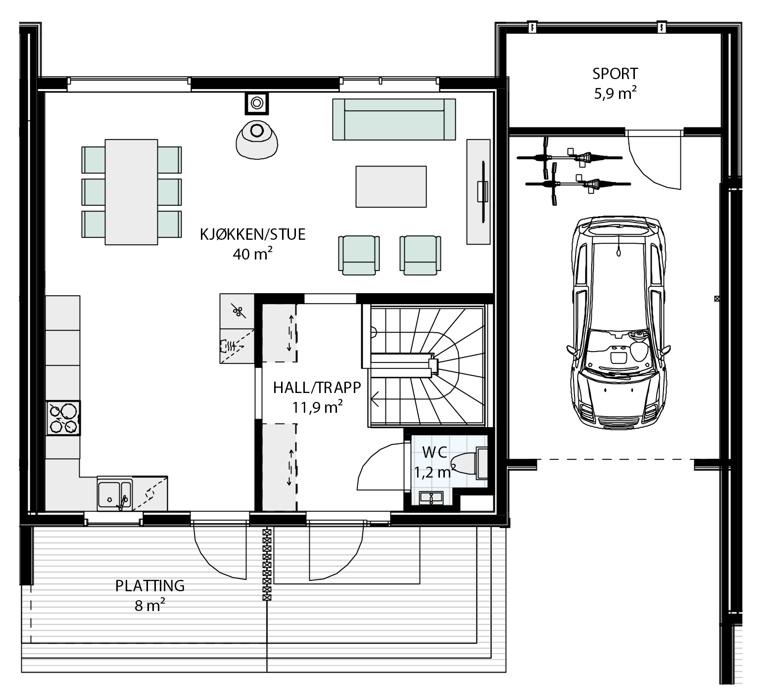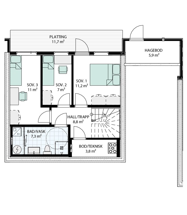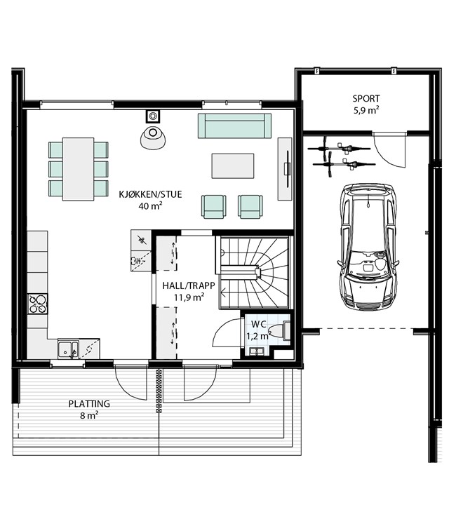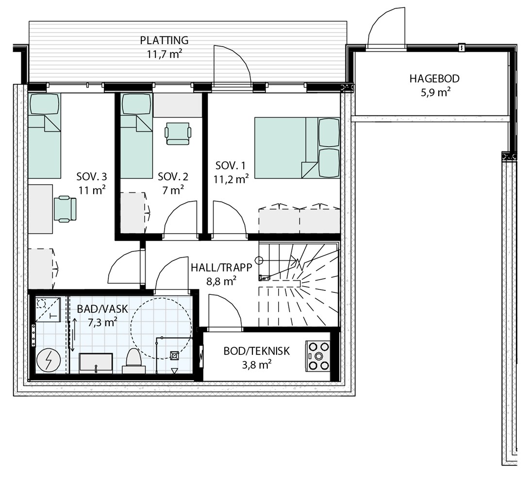 Nøkkelferdig enebolig i kjede med opparbeidet utomhus/tomt