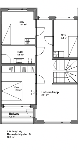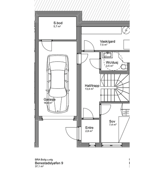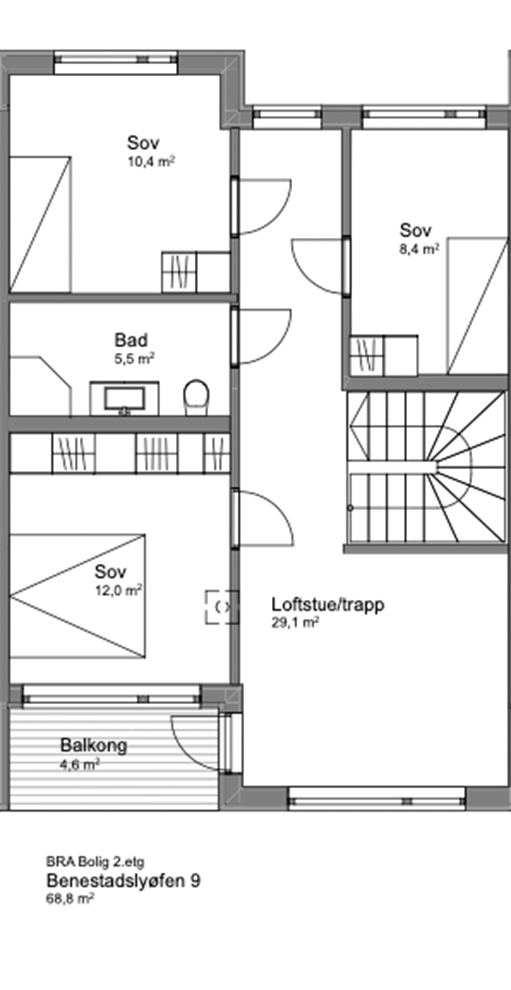 Boligene går over 3 etasjer og tilbyr 4 soverom, et praktisk vaskerom/garderobe, to bad og en større åpen stue/kjøkken-løsning. Boligen har i tillegg en større loftstue, garasje og to balkonger. Fra stue/kjøkken er det utgang til grøntområde bak huset.