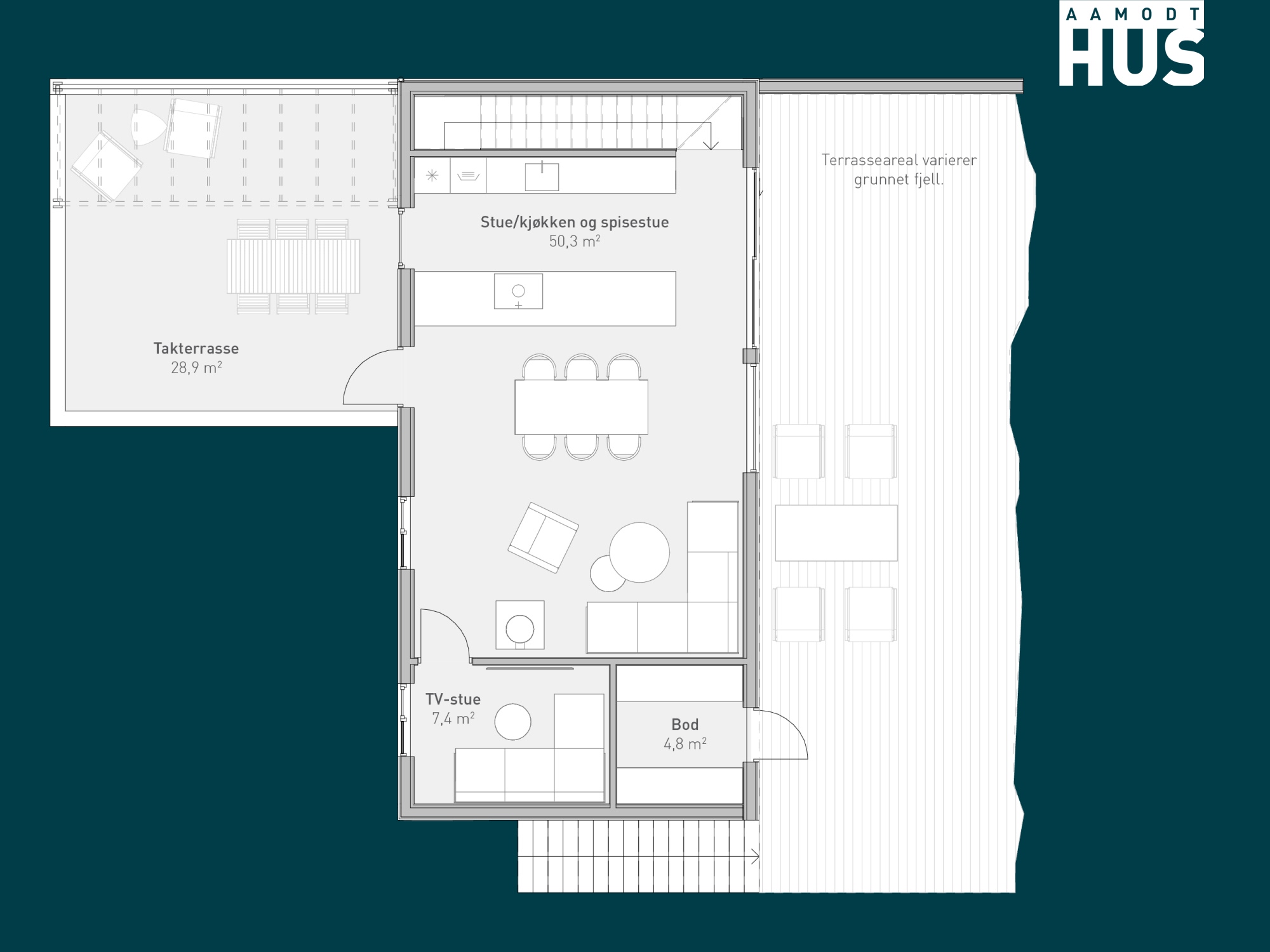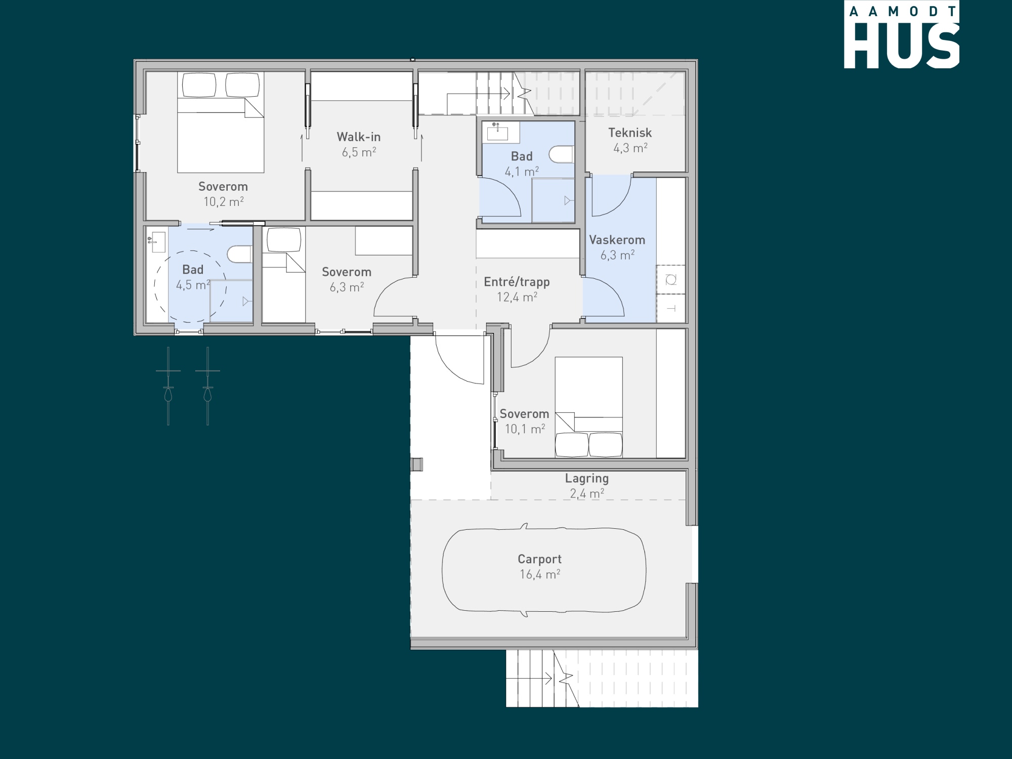 Se byggebeskrivelse og romskjema i salgsoppgave for nøyaktig leveranse.