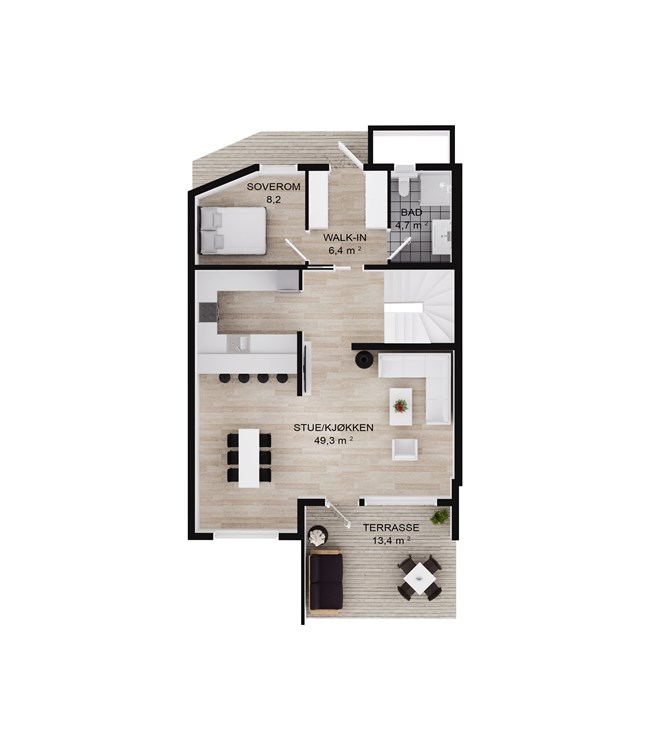 Boligene leveres helt ferdig inne og ute, alt i en standard du vil bli positivt overrasket over. Her flytter du rett inn. En oversiktlig byggeprosess og hvor du selv velger hvor mye du vil involvere deg.