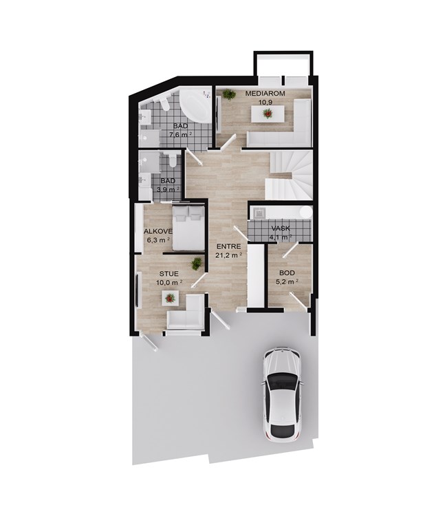 Her må vi nok en gang presisere, at inkludert er også utvendig hage, hekker, belegningsstein i høy grad slik som presentert på illustrasjoner. Innvendig ferdigstiller vi også selvsagt, alt av bad, kjøkken, downlights,, ventilasjon og videre. Igjen, be om prospekt.